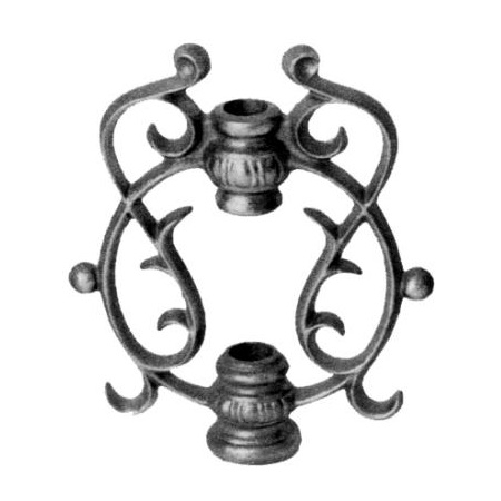 Вставка в балясину, сквозное отверстие под круг 16 мм, стальное литье с добавлением чугуна. Применяется как декоративный элемент для стоек ограждения кованых заборов, ворот, калиток, лестниц и в других изделиях художественной ковки.