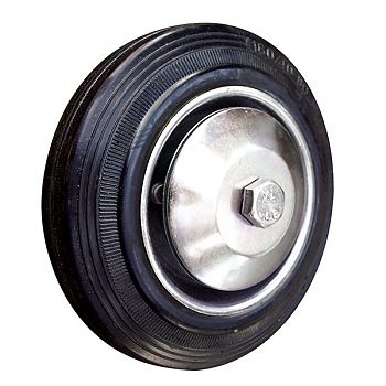 Колесо со стандартной литой черной резиной и стальным прессованным ободом. В оси имеется подшипник. Колесо отличается низким уровнем издаваемых при движении шумов, обладает ударопоглощающими и антивибрационными свойствами.
