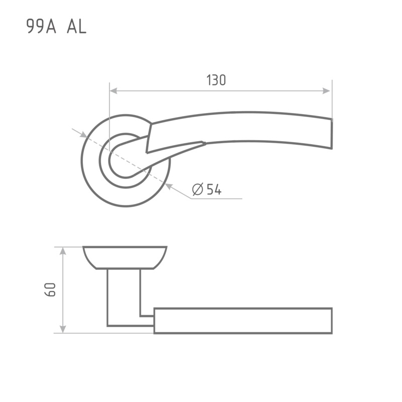 Ручка для межкомнатных и входных дверей 99A Al выполнена из сплавов ЦАМ и алюминия, и предназначена для установки на двери толщиной от 35 до 55 мм. Ручка покрыта гальваническим способом в 5 слоев (медь, никель, колеровочный слой и два слоя лака).