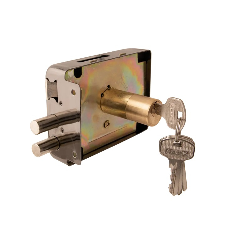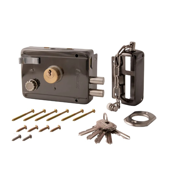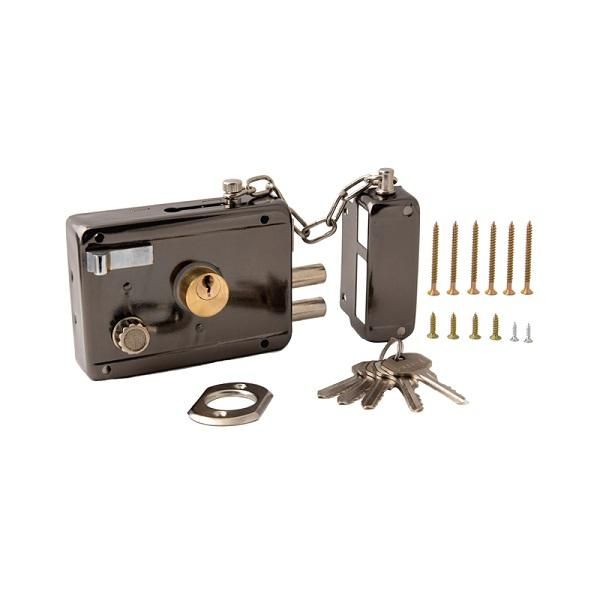 Замок накладной Apecs 0097-BN предназначен для установки на внутренние двери жилых помещений правого и левого расположения, толщиной до 50 мм. Замок не предназначен для установки на двери, открывающиеся наружу. Корпус замка изготовлен из долговечной стали с антикоррозионным покрытием в цвете черного никеля. Удаление ключевого отверстия (бэксет) - 60 мм. Снаружи открыть и закрыть можно ключом, изнутри — рычагом с ручкой. Засов выполнен в виде двух стальных стержней круглого сечения. Под ключ предусмотрена пластиковая направляющая. Оснащен фиксатором.