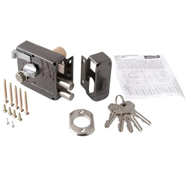 Замок накладной Apecs 0556-С-BN для деревянных дверей предназначен для установки на двери жилых помещений правого и левого расположения (толщиной до 50 мм), открывающихся внутрь помещения. Индекс «С» обозначает комплектацию замка внутренней вертушкой.