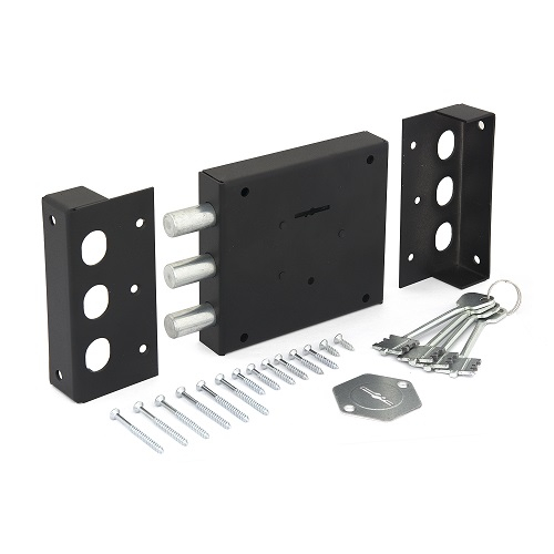 Замок накладной Шепард Аверс Богатырь-2 8-сувальдный с тремя ригелями ф16мм. 2 класс. Универсальный. Снаружи и изнутри откр. и закрывается ключом. Может быть установлен на металлические и деревянные двери