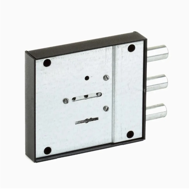 Замок накладной Богатырь-М, сувальдного типа предназначен для запирания правых и левых входных дверей в квартиры, открываемых как вовнутрь, так и наружу. Накладной замок имеет стальной корпус и стальной ригель, состоящих из трех штырей диаметром 16мм. Длина запирающей части ригеля равна 30мм. Замок подходит для установки на двери толщиной 40 — 50мм. Количество кодовых вариантов секрета 250 000 000 комбинаций. Замок Богатырь сертифицирован по ГОСТ (5089-2011), замку присвоен 2 класс. Удаление ключевого отверстия равно 70,5 мм (расстояние от края дверного полотна до центра ключевой скважины).