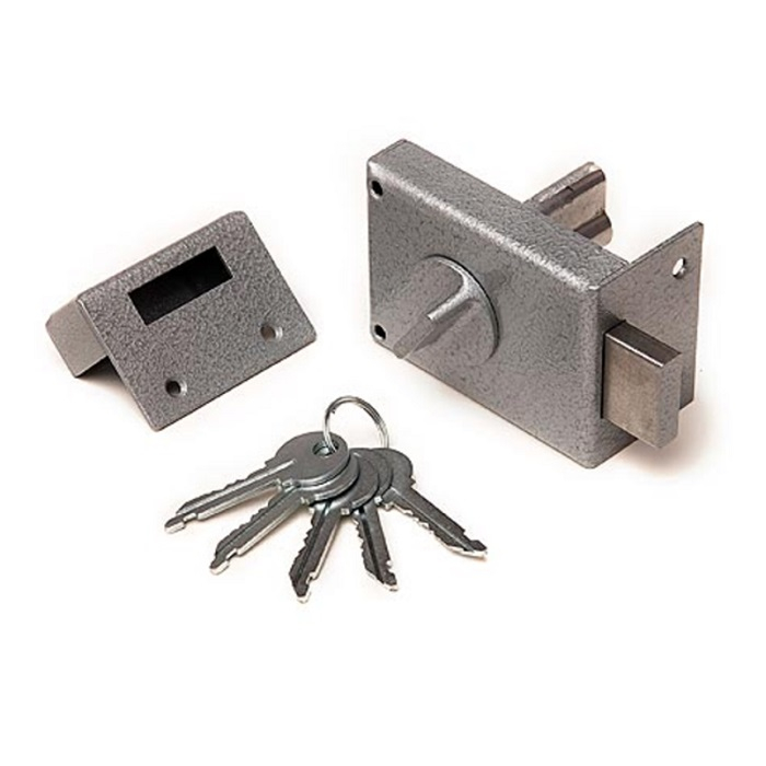 Замок накладной Глазов-3Н1-1.1 цилиндровый с вертушкой. Предназначен для установки на деревянные двери. Засов прямоугольного сечения размерами 10х33 мм, с максимальным вылетом 24 мм. Удаление ключевого отверстия - 55 мм. Габариты замка - 100х72х20 мм. Комплектация - 5 ключей, накладки, запорная планка. Механизм замка под англ.ключ, идет совместно с корпусом. Закрывание и открывание замка изнутри производится вертушкой, снаружи ключом.