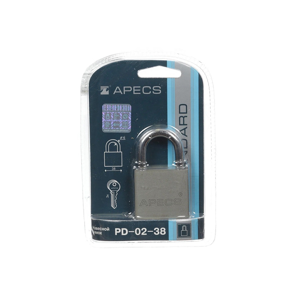 Описание замка навесного Apecs PD-02-38, цилиндрового, 3 ключа, чугун, блистер