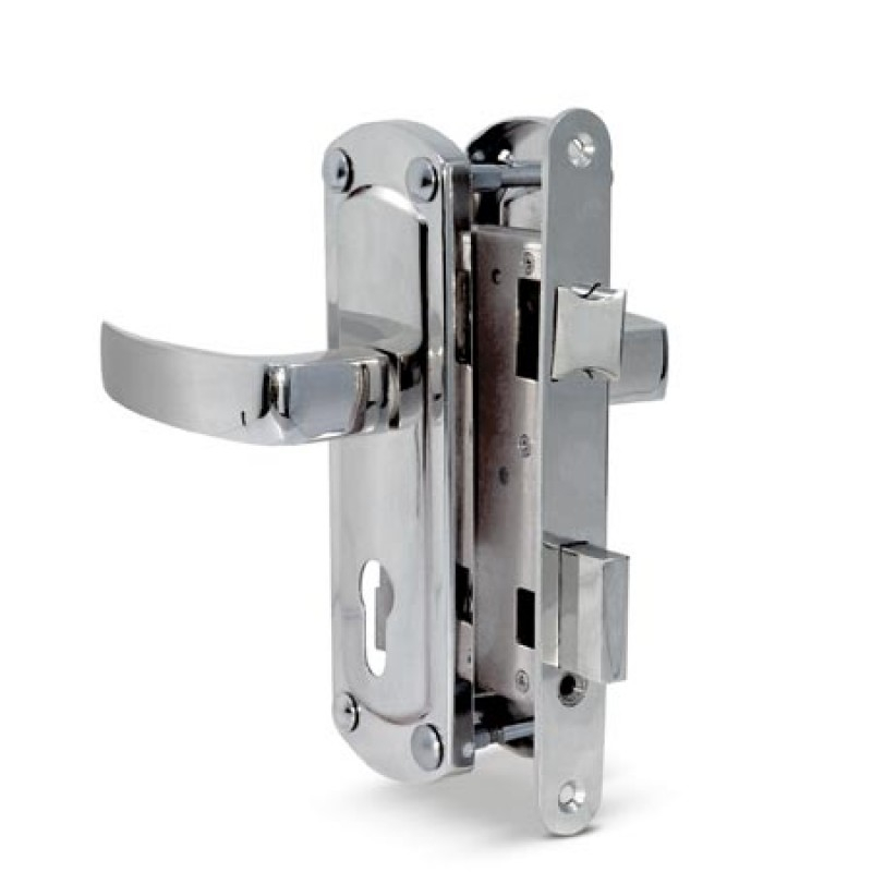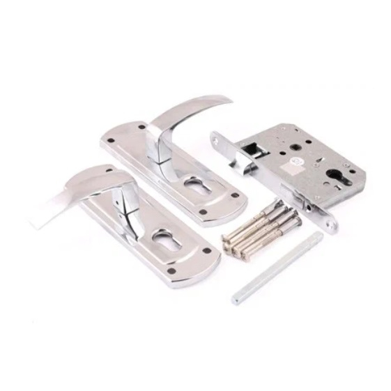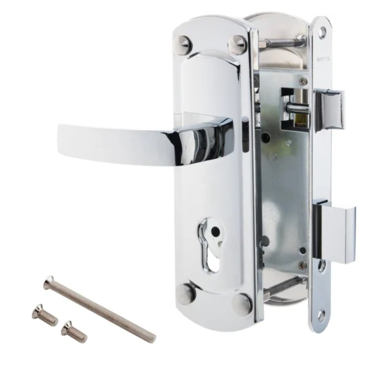 Врезной замок Apecs можно использовать как для входных, так и для межкомнатных дверей. Замок комплектуется двумя полированными ручками, защелкой под фиксатор и ответной накладкой на дверную коробку. При необходимости в него можно установить замок под евроцилиндр для запирания двери.