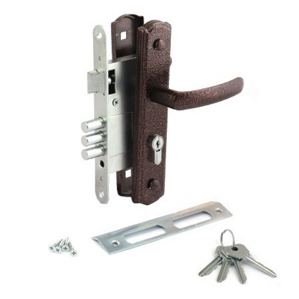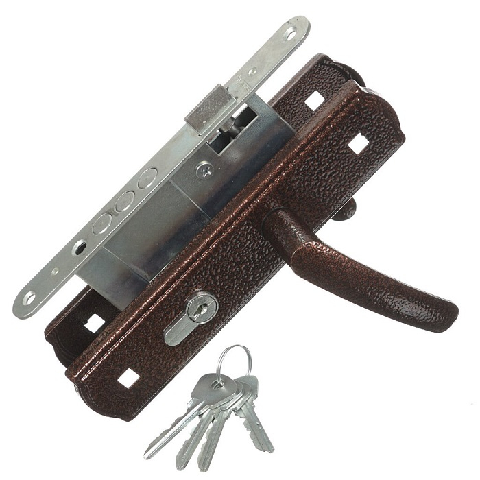 По характеристикам сплав напоминает латунь, отлично сохраняет качества даже при повышенной влажности, перепадах температур. Рекомендуем устанавливать дверную ручку с замком в межкомнатные полотна. Однако запирающая система зарекомендовала себя как надежная и во входных дверях (включая металлические).