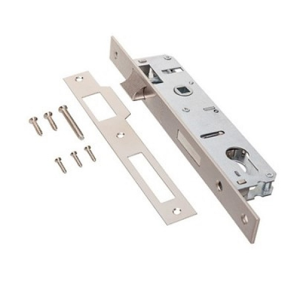 Замок врезной предназначен для запирания левых и правых дверей из алюминия и ПВХ профиля, открывающихся как внутрь, там и наружу. Корпус замка - оцинкованная сталь.