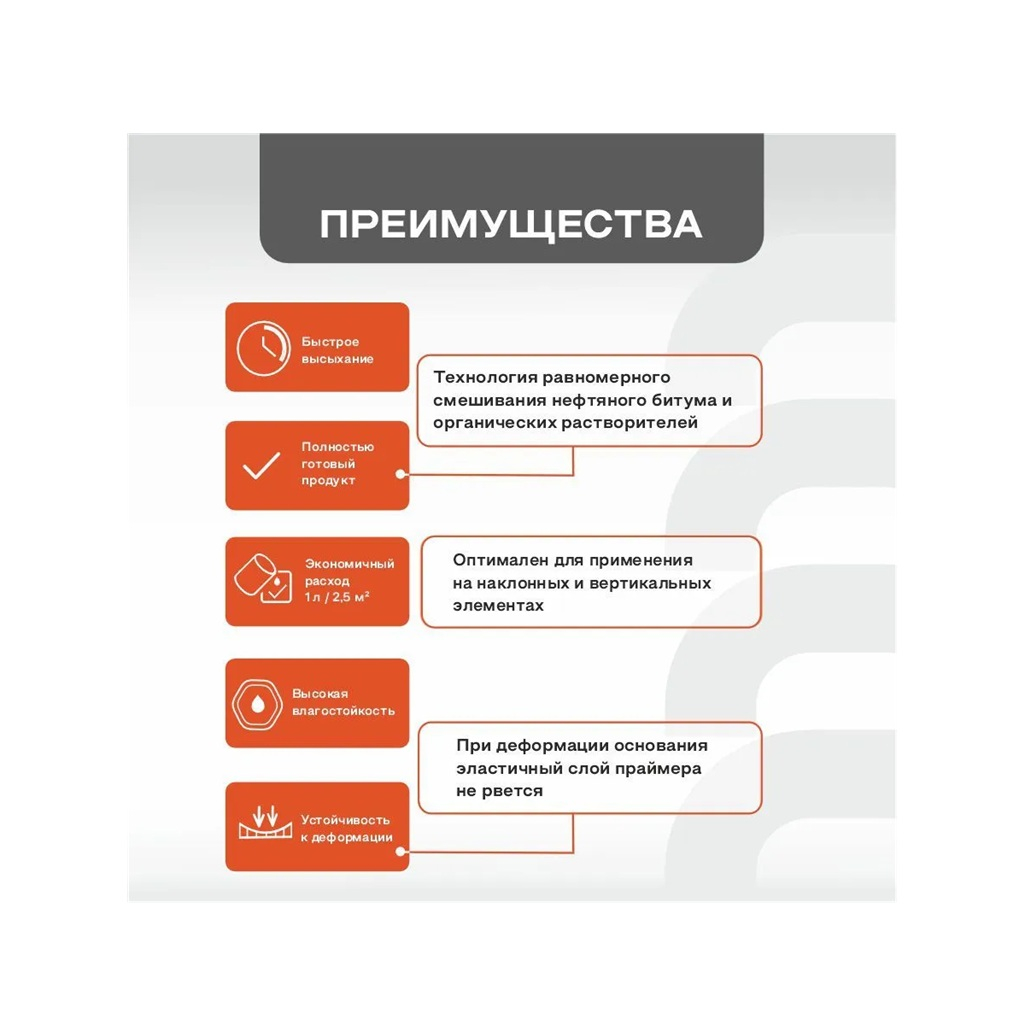 Праймер битумный Obern Black для кровли, универсальный, черный, 14 кг - это профессиональное решение для подготовки кровельных поверхностей перед укладкой гидроизоляционных материалов. Готовый к применению состав создан на основе высококачественного нефтяного битума и органических растворителей, обеспечивая идеальное сцепление между основанием и кровельным покрытием. Специально разработан для использования при монтаже самоклеящихся кровельных материалов. Благодаря особой формуле, праймер надежно защищает основание от влаги и создает прочное эластичное покрытие, устойчивое к деформациям. Подходит для работы как с горизонтальными, так и с наклонными поверхностями, что делает его универсальным решением для любых кровельных работ. Практичный объем в 14 кг позволяет выполнить значительный объем работ, а удобная упаковка обеспечивает легкость в транспортировке и хранении. Продукт создан с учетом требований профессиональных строителей и идеально подходит для использования как в частном, так и в промышленном строительстве.