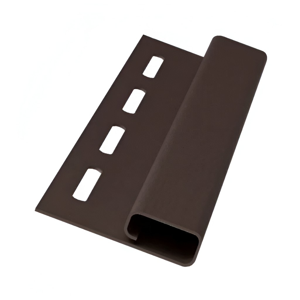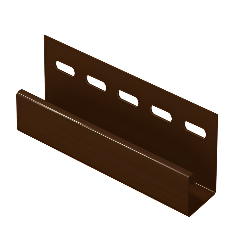 Планка для монтажа фасадных панелей Альта-Профиль, J-профиль, сайдинг, ПВХ, коричневый, 3000 мм – это незаменимый отделочный элемент для классического сайдинга. Предназначена для отделки оконных и дверных проёмов без откосов, внутренних углов и монтажа софитов.