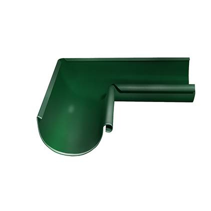 Желоб угловой 90° необходим для огибания прямых углов крыши. Различают наружный и внутренний угол желоба. Угол градусов, устанавливается на внутренних и внешних углах кровли, предназначен для изменения направления движения воды.