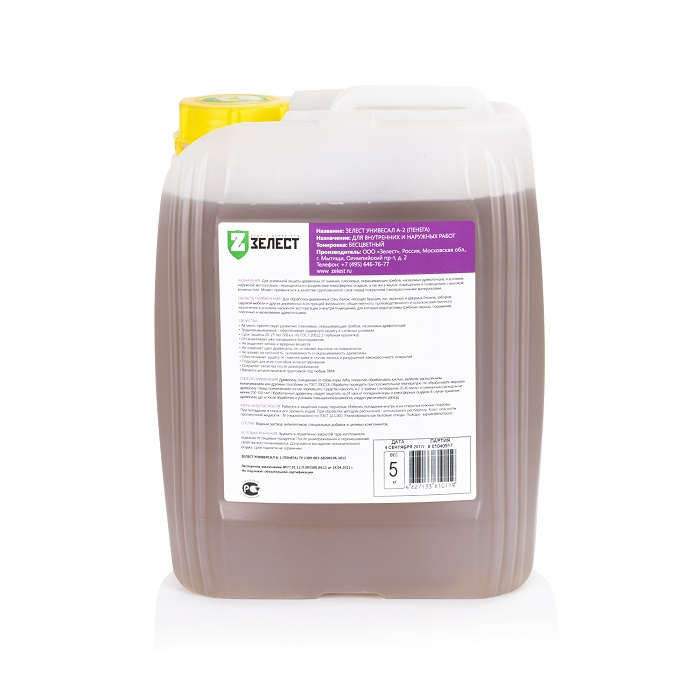 Технические характеристики антисептика Зелест Универсал А-2, 10 кг