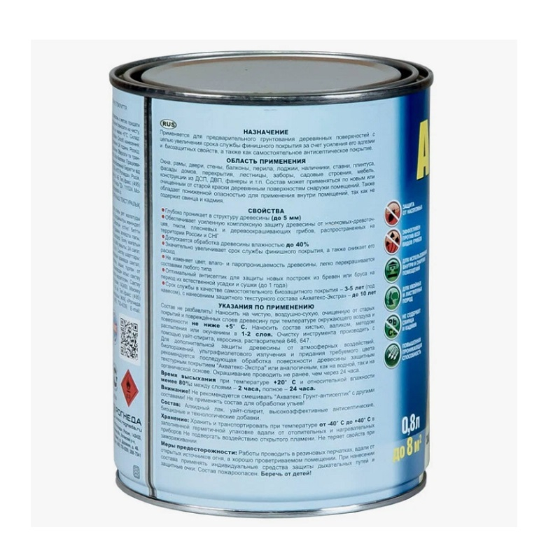 - Универсальность: Подходит для нанесения на влажную древесину (до 40%), обеспечивая удобство использования в любых условиях.