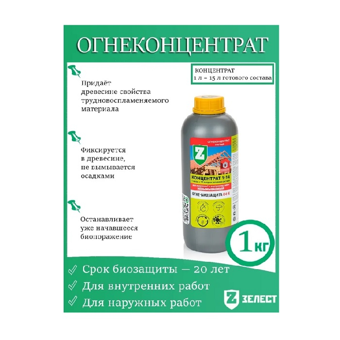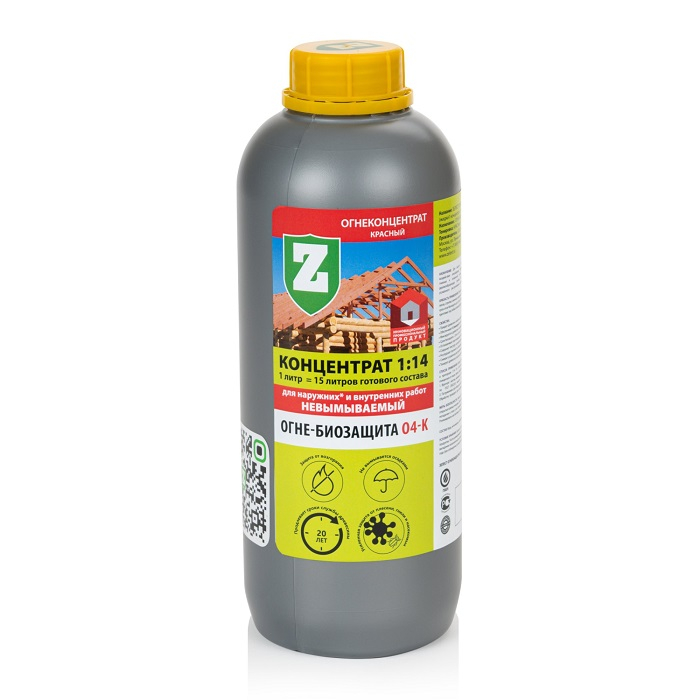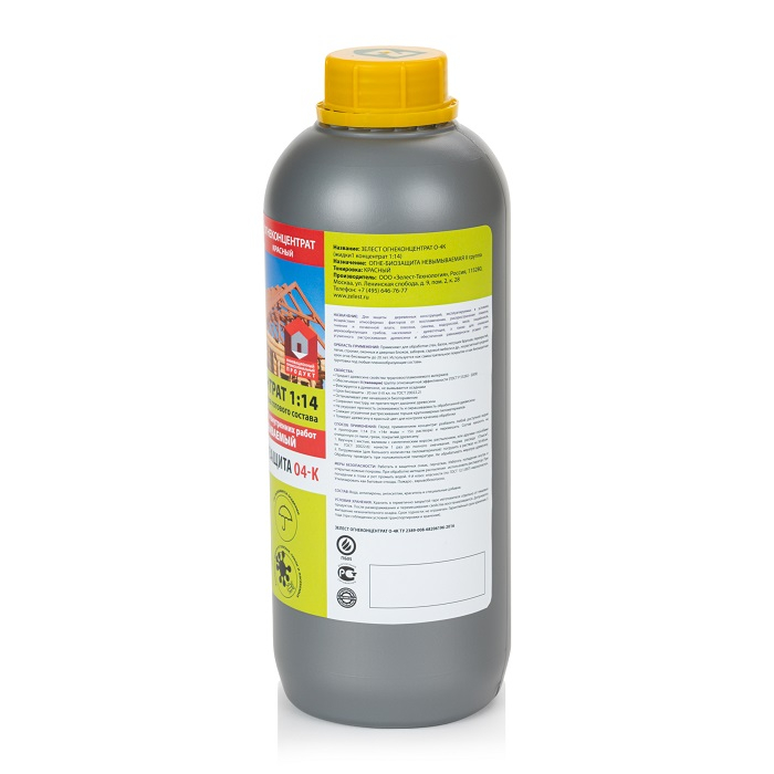 Описание огне-биозащиты ЗЕЛЕСТ О-4К ОГНЕКОНЦЕНТРАТ 1:14 1 л
