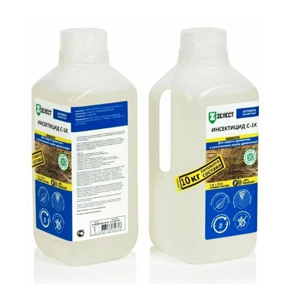 Инсектицид Зелест С-1К Антижук для защиты древесины от насекомых и плесени, 1 кг — надежное средство для усиленной защиты древесины от насекомых-древоточцев, гниения, грибов плесени и синевы. Эффективен на всех стадиях развития вредителей, как внутри помещений, так и на открытом воздухе. Для получения рабочего состава разбавьте жидкий концентрат пресной водой в пропорции 1:9 и тщательно перемешайте.