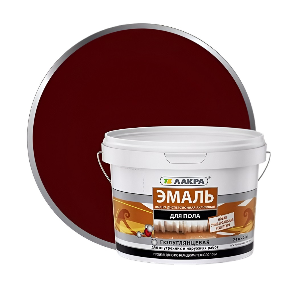 Эмаль для пола Лакра 0008104 акриловая, для внутренних и наружных работ, полуглянцевая, Красно-коричневый, 2.4 кг