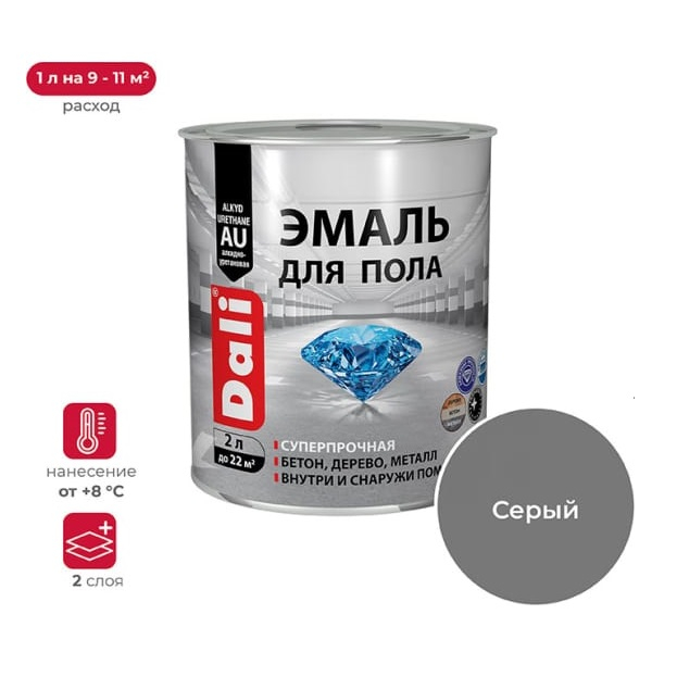 - Эмаль DALI для пола, серый 2л