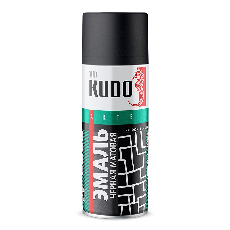 Описание эмали Kudo RAL 9005 быстросохнущей, алкидной, черной, матовой, аэрозоль 520 мл