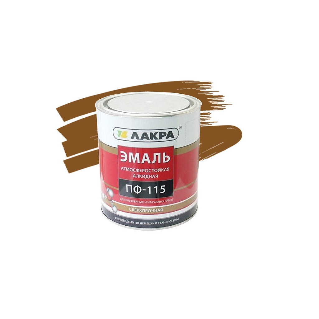 Описание эмали Лакра ПФ-115 для внутренних и наружных работ, алкидная, глянцевая, коричневая, 2 кг