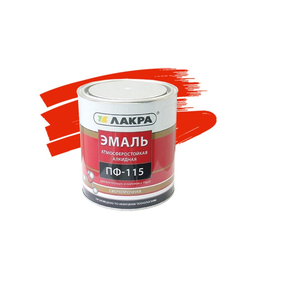 Описание эмали Лакра ПФ-115 для внутренних и наружных работ, алкидная, глянцевая, красный, 1 кг