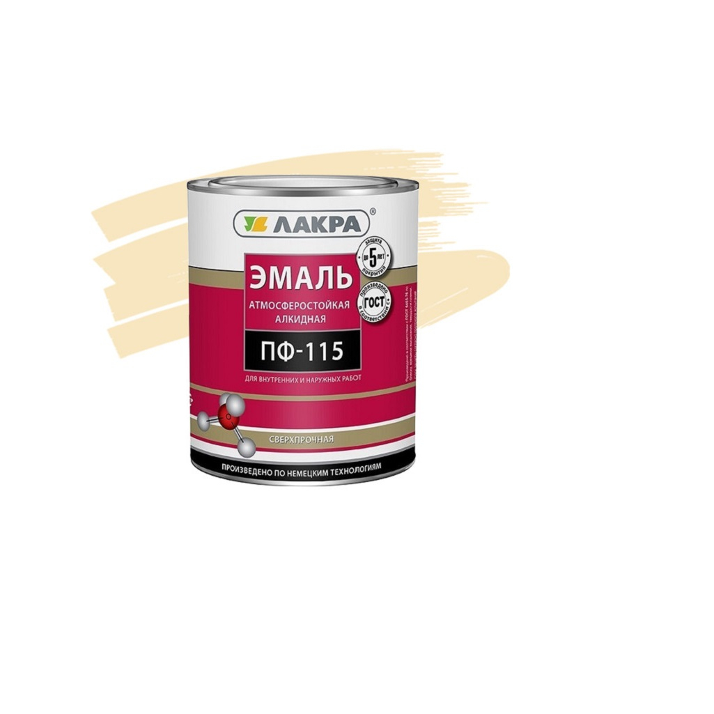 Описание эмали Лакра ПФ-115 для внутренних и наружных работ, алкидная, глянцевая, кремовый, 1 кг