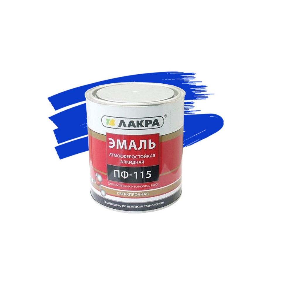 Описание эмали Лакра ПФ-115 для внутренних и наружных работ, алкидная, глянцевая, синяя, 1 кг