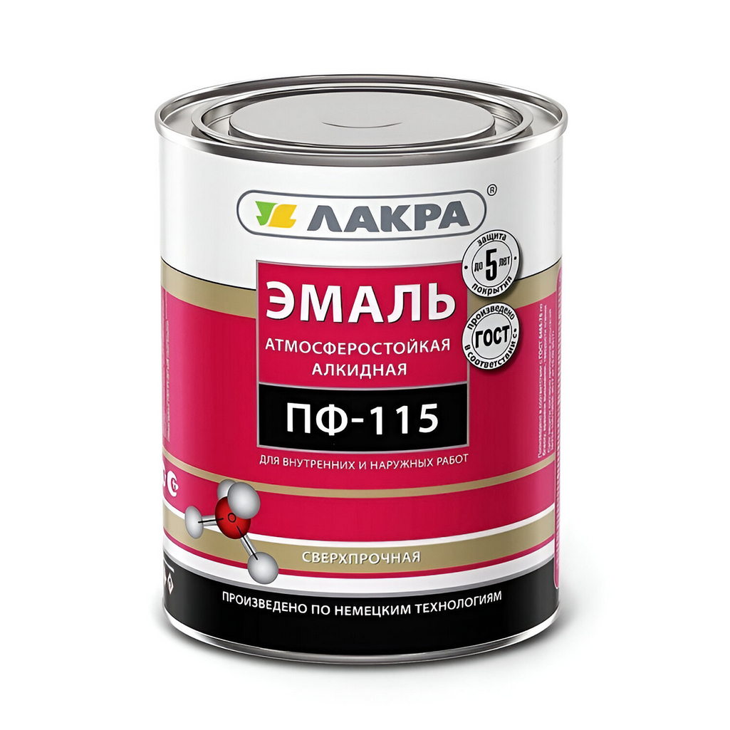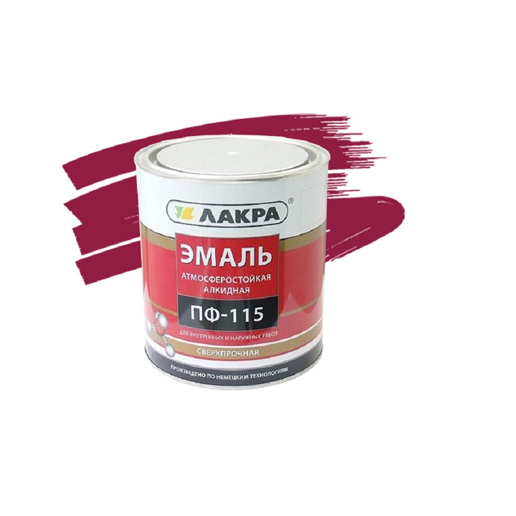 Описание эмали Лакра ПФ-115 для внутренних и наружных работ, алкидная, глянцевая, вишневый, 1 кг
