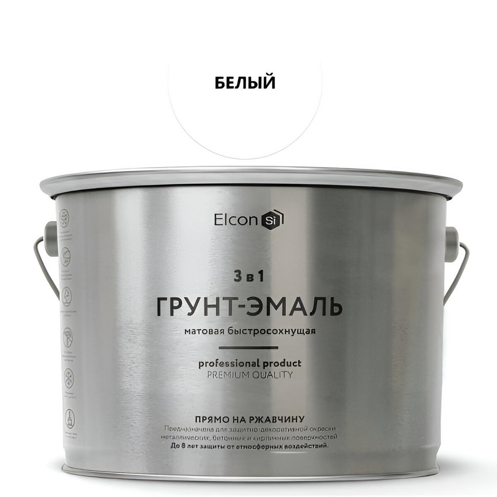 Грунт-эмаль Elcon 3 в 1, для внутренних и наружных работ, по ржавчине, матовая, белая, 2.0 кг