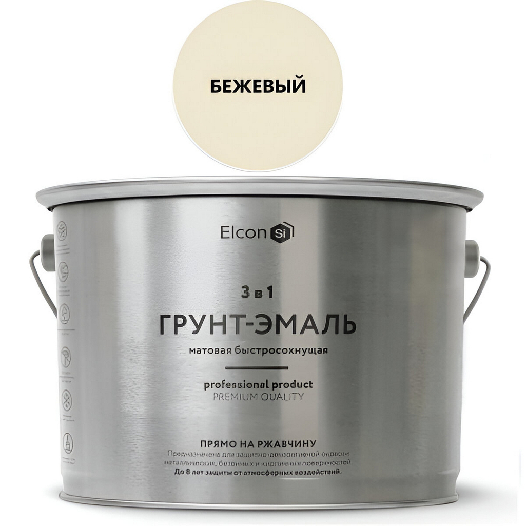 Грунт-эмаль Elcon 3 в 1, для внутренних и наружных работ, по ржавчине, матовая, бежевая, 2.0 кг