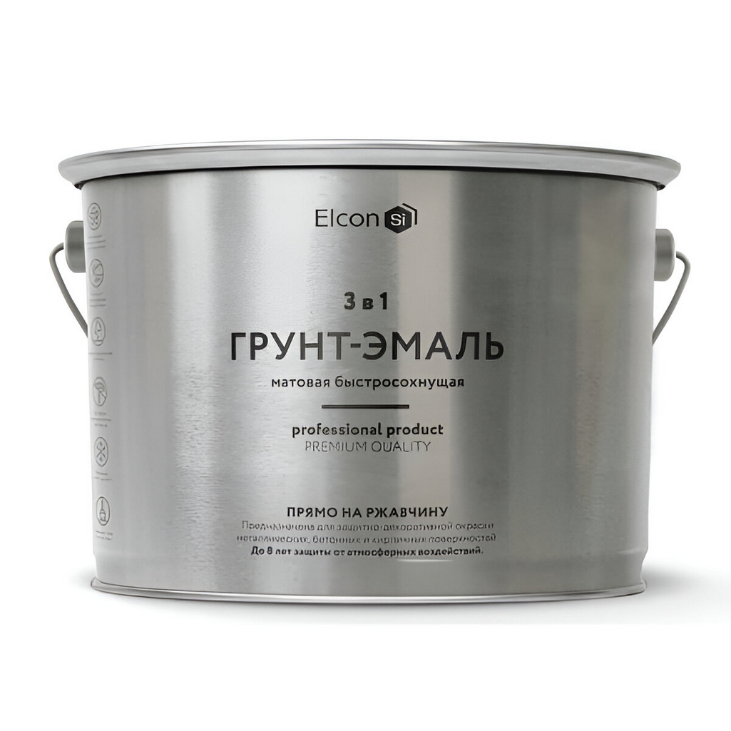 Грунт-эмаль Elcon 3 в 1, для внутренних и наружных работ, по ржавчине, матовая, черная, 2 кг