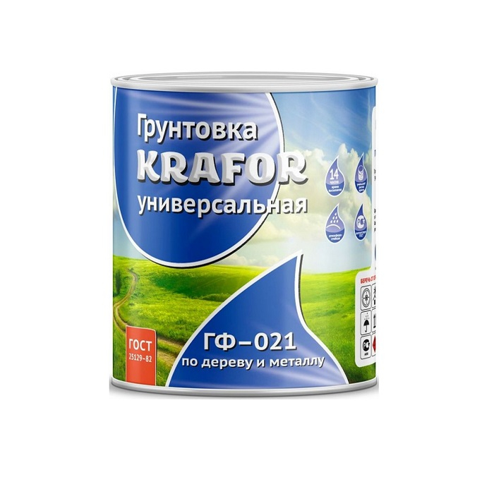 Грунт ГФ-021 серый 0,8кг KRAFOR предназначен для грунтования в процессе ремонта и строительства поверхностей из металла и дерева перед тем, как наносить на них лакокрасочные материалы.