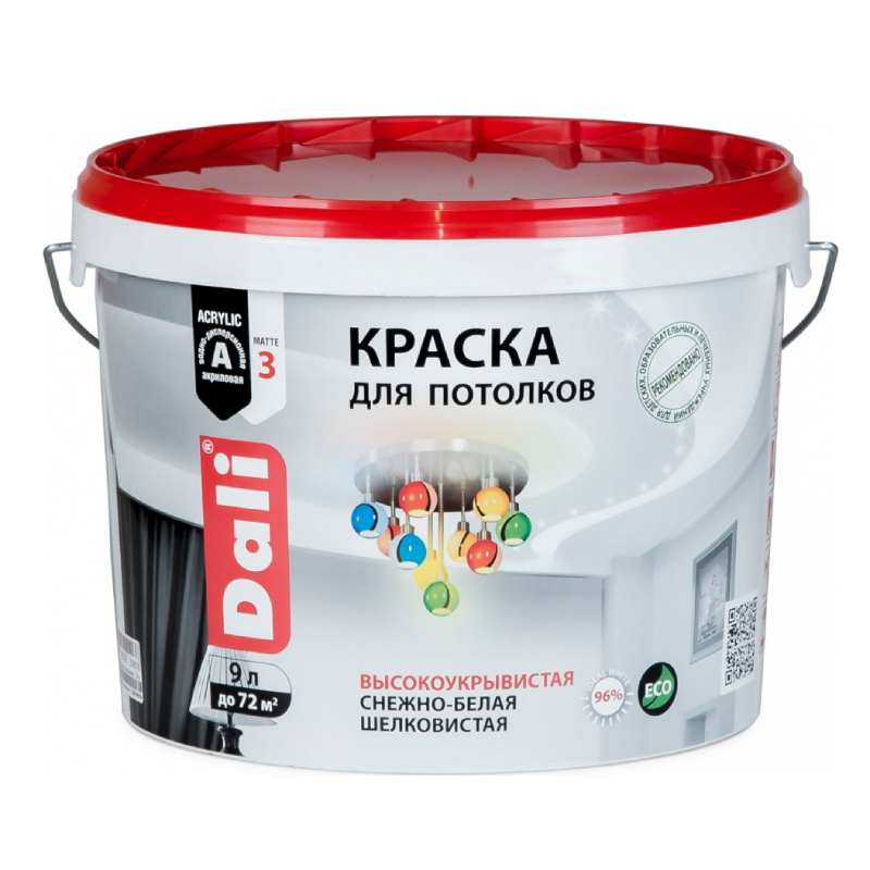 Описание краски DALI для потолков, снежно-белая шелковистая 9 л 20249