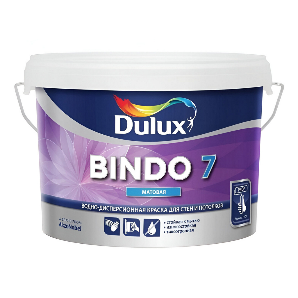 - Краска DULUX "BINDO 7" экстрапрочная, для стен и потолков, матовая, база BW 2,5л
