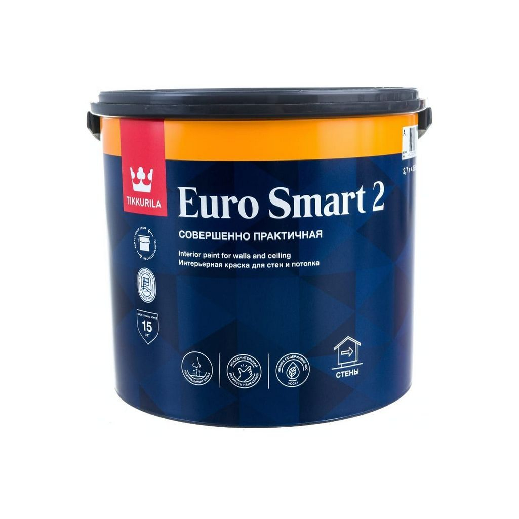 - Краска TIKKURILA EURO SMART 2 интерьерная, для стен и потолков 2,7л