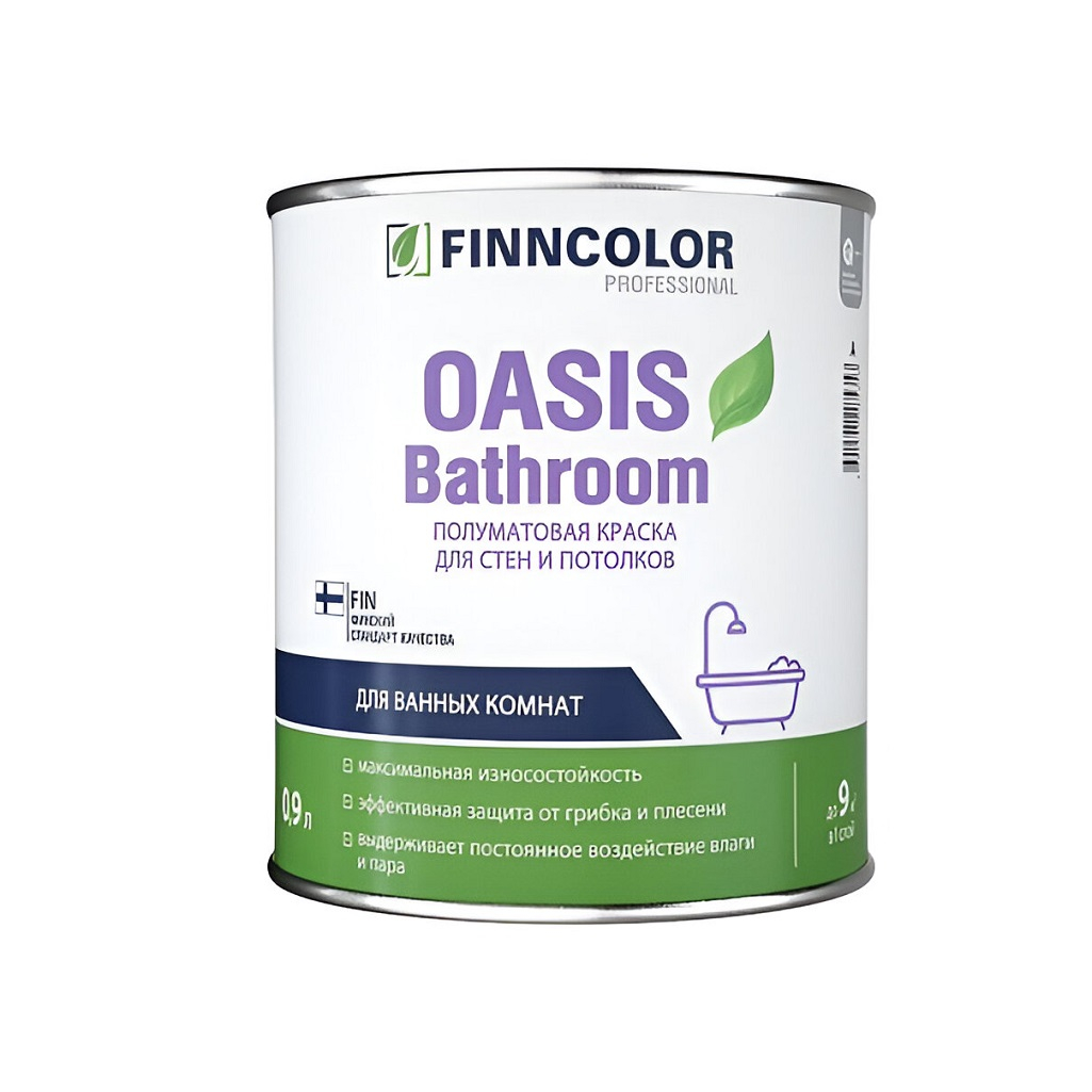 - Краска FINNCOLOR Oasis Bathroom для влажных помещений база А белый 0,9л