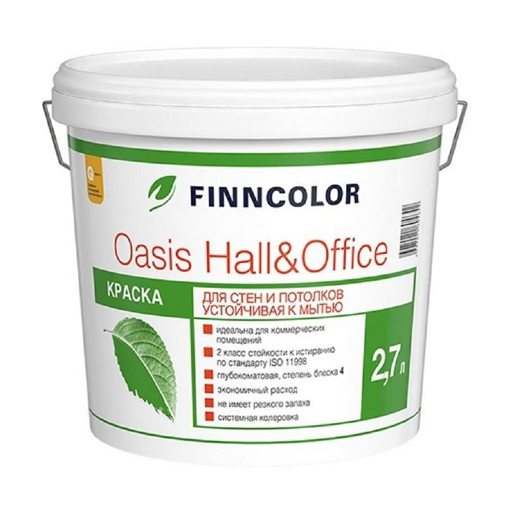 Технические характеристики краски Finncolor Oasis Hall & Office для стен и потолков белая 2,7 л