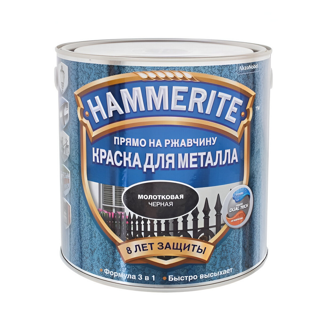 Технические характеристики краски Hammerite для металла черная молотковая 2 л
