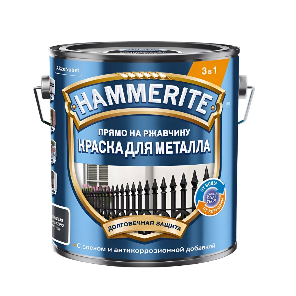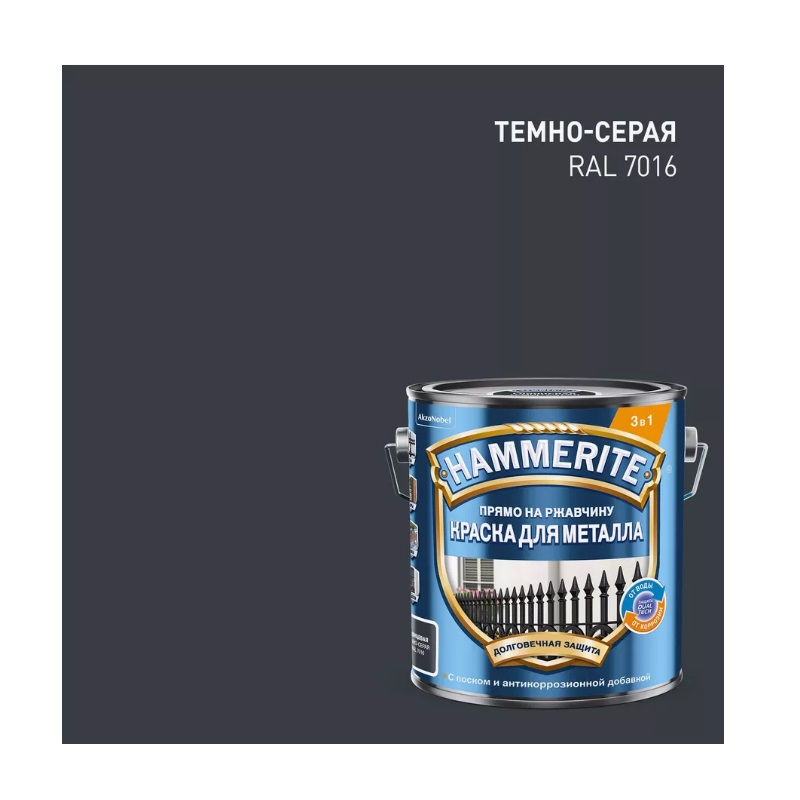 - Краска HAMMERITE для металла 3 в 1 RAL 7016 тёмно-серая 2л