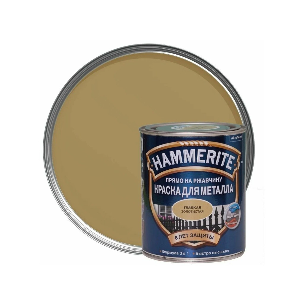 Краска Hammerite для металла 3 в 1, золотистая RAL 1036, 0.75 мл