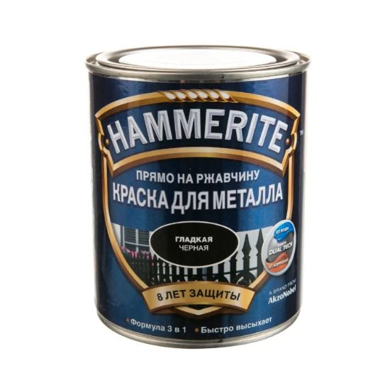 Описание краски Hammerite для металла гладкая 0,75 л черный