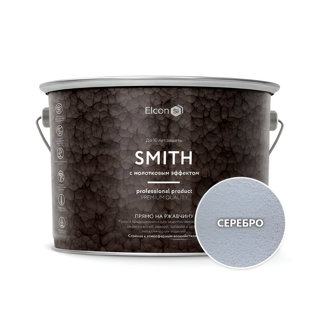 - Краска ELCON Smith кузнечная с молотковым эффектом серебро 2кг