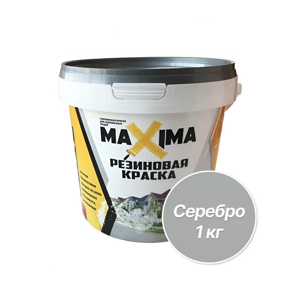 Краска Maxima, резиновая, для внутренних и наружных работ, матовая, №110 серебро, 1 кг