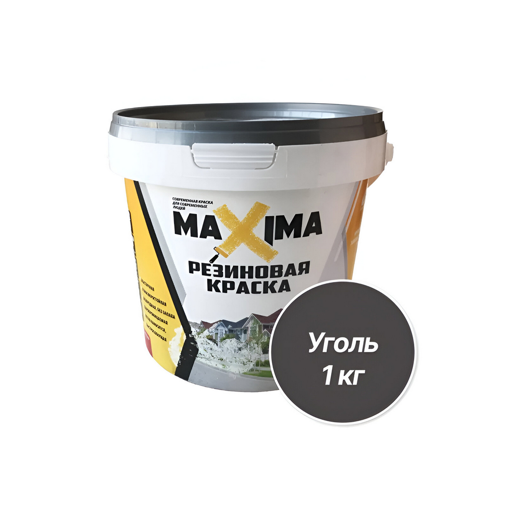 Краска Maxima, резиновая, для внутренних и наружных работ, матовая, №111 уголь, 1 кг