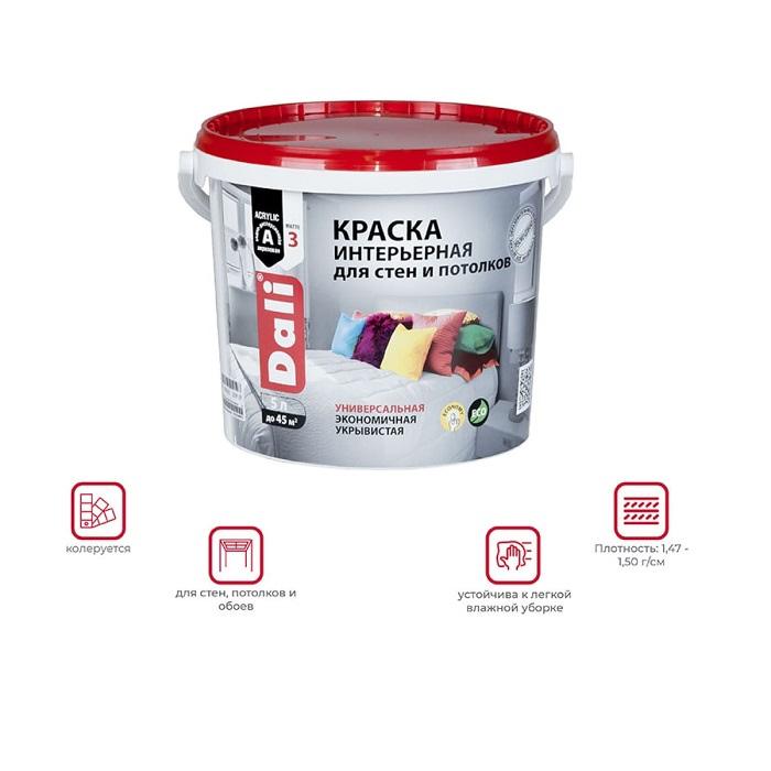 Технические характеристики краски DALI интерьерной для стен и потолков База А