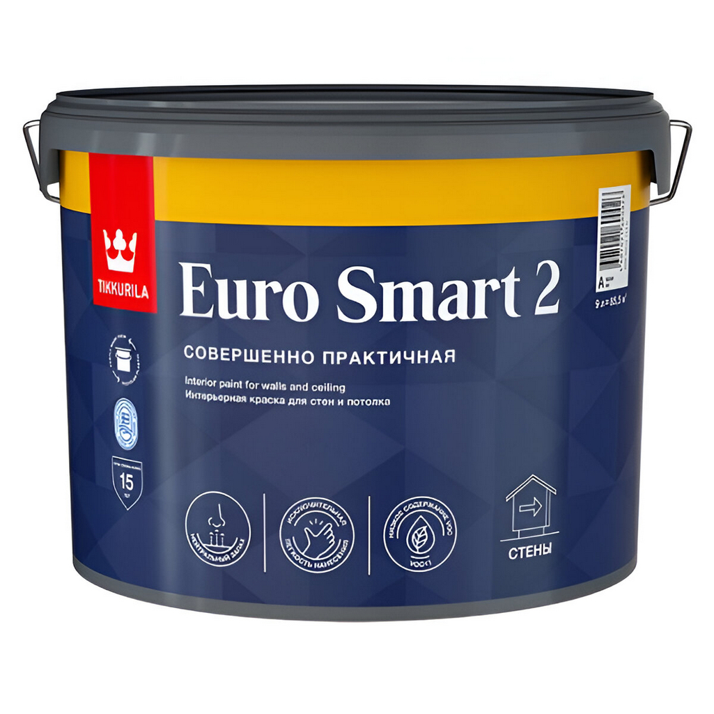 - Краска TIKKURILA EURO SMART 2 интерьерная, для стен и потолков 9л