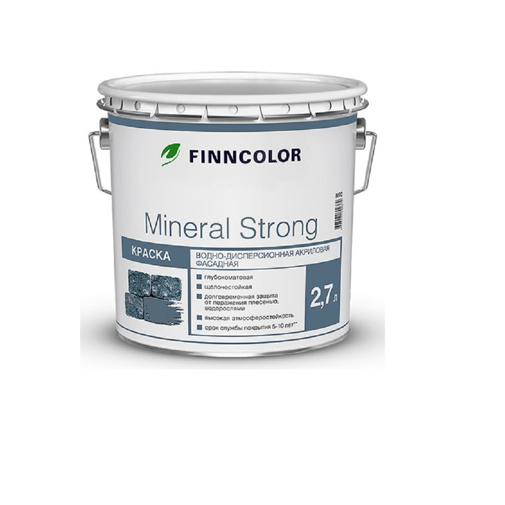 Краска Finncolor Mineral Strong Tikkurila - это водно-дисперсионная акриловая щелочестойкая глубокоматовая краска для фасадов. Предназначена для использования снаружи помещений, защиты нового и ранее окрашенного бетона, известково-цементной штукатурки, силикатного кирпича, фибро и асбестоцементных плит, образует паропроницаемое атмосферостойкое покрытие. Покрытие краски обеспечивает долговременную защиту от поражения плесенью и водорослями. Время высыхания 2 часа, степень блеска - глубокая матовая. Краска устойчива к мытью, поверхность гладкая. Высыхание: при (20±2) ºС и относительной влажности (65±5)% - 2 часа. Следующий слой можно наносить через 12 часов. При температуре воздуха ниже +15°С и относительной влажности воздуха выше 65% следующий слой наносить не ранее, чем через 24 часа.