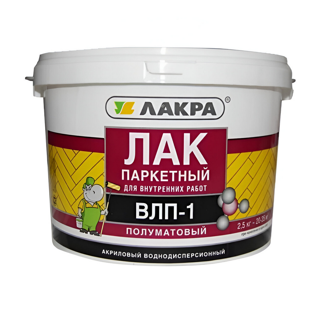 - Лак ЛАКРА ВЛП-1 акриловый, паркетный, полуматовый 2,5кг