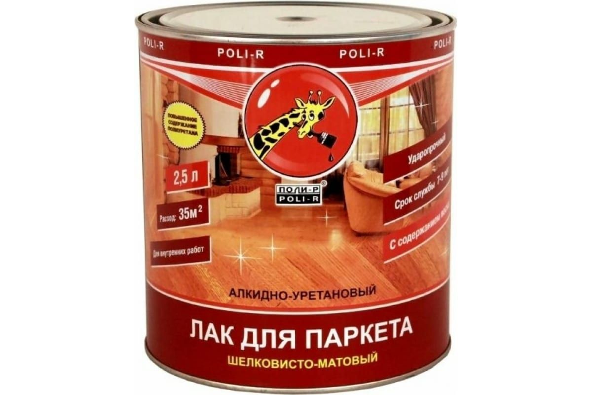 - Лак ПОЛИ-Р для паркета, шелковисто-матовый 2,5л