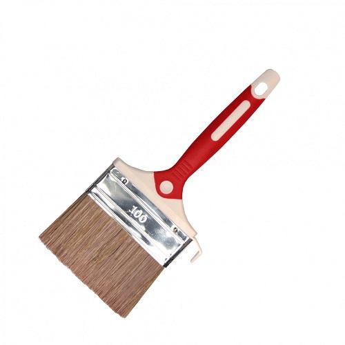 Кисть используется для нанесения лакокрасочных материалов различного типа на подготовленную поверхность. Щетина изготовлена из смешанной щетины, которая удерживает краску или аналогичный отделочный материал и не дает стекать с кисти. Рукоятка выполнена из бикомпонентного материала.