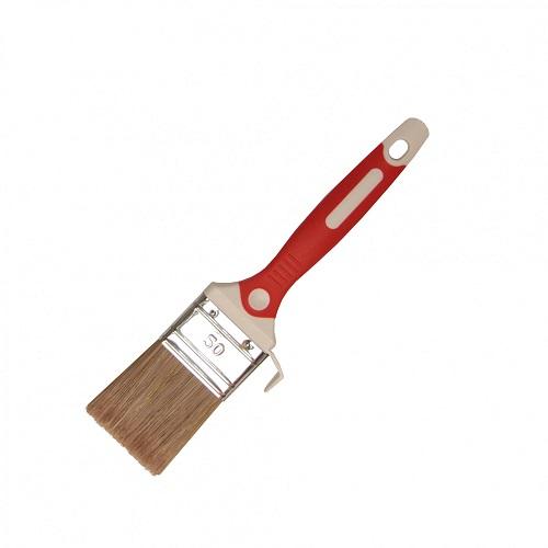 Кисть используется для нанесения лакокрасочных материалов различного типа на подготовленную поверхность. Щетина изготовлена из смешанной щетины, которая удерживает краску или аналогичный отделочный материал и не дает стекать с кисти. Рукоятка выполнена из бикомпонентного материала.